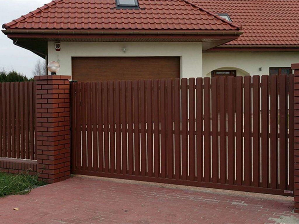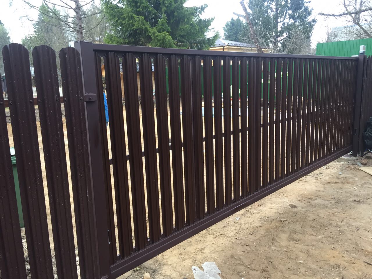 Откатные ворота из евроштакетника на винтовых сваях (цена на бетонном основании +20000р)